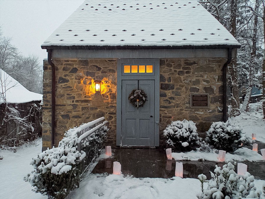 The candlelight tour winds its way through luminary-lit streets, offering visitors both historical and visual insight into many of the Moravian buildings that once comprised the original town. Highlights of the tour include the Inn at Millrace Pond (the original grist mill), First Hope Bank (the original Moravian meeting house), the Moravian Distillery, the Hope Museum, and several private homes and historic structures. Furthermore, this year’s festivities will also include a live Nativity, local businesses will be open for holiday shopping, and food will be served during our Festival of Trees in our Community Center. The beloved Festival of Trees custom includes ten Christmas trees decorated by ten different volunteer groups in town, all with distinct themes.